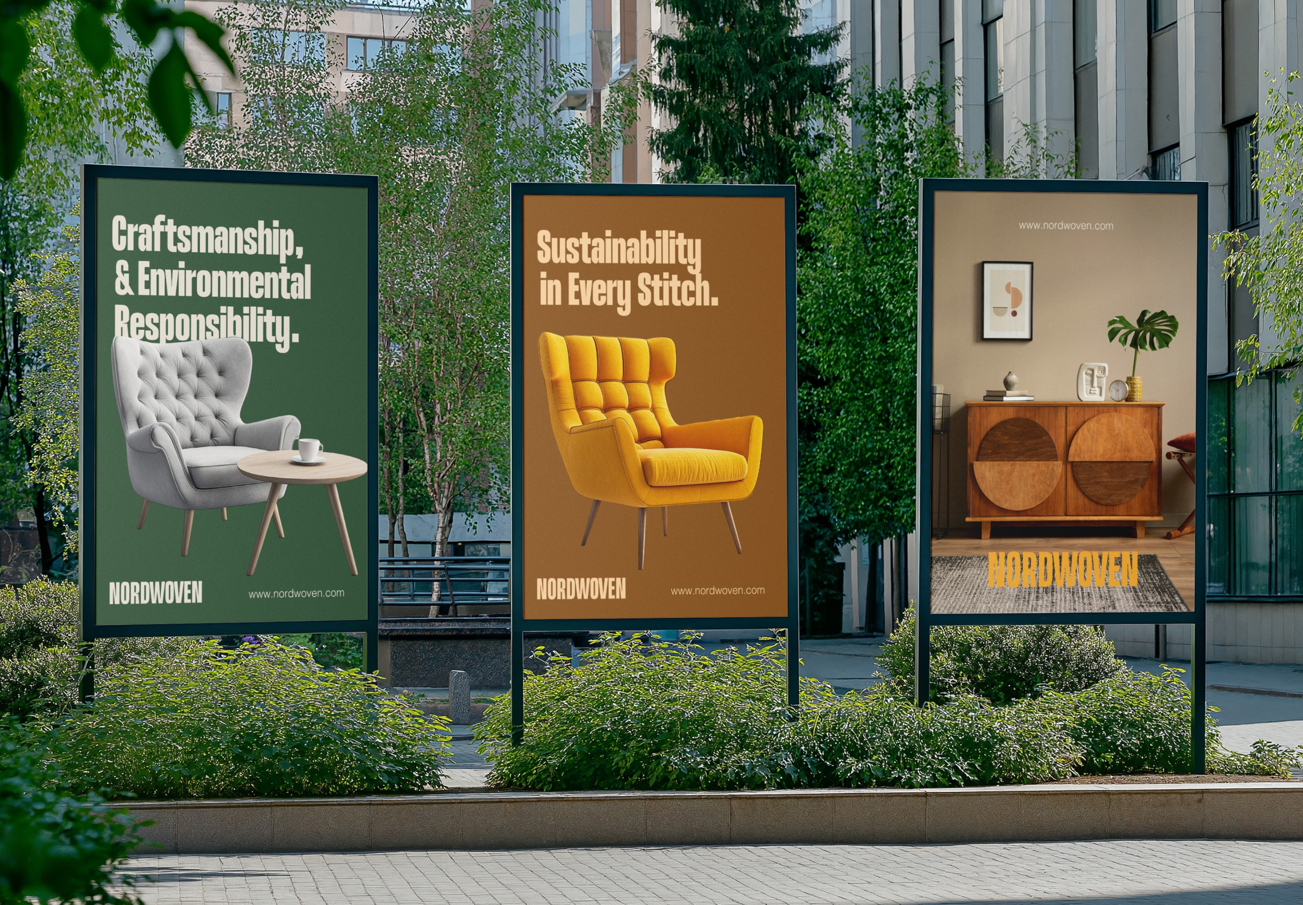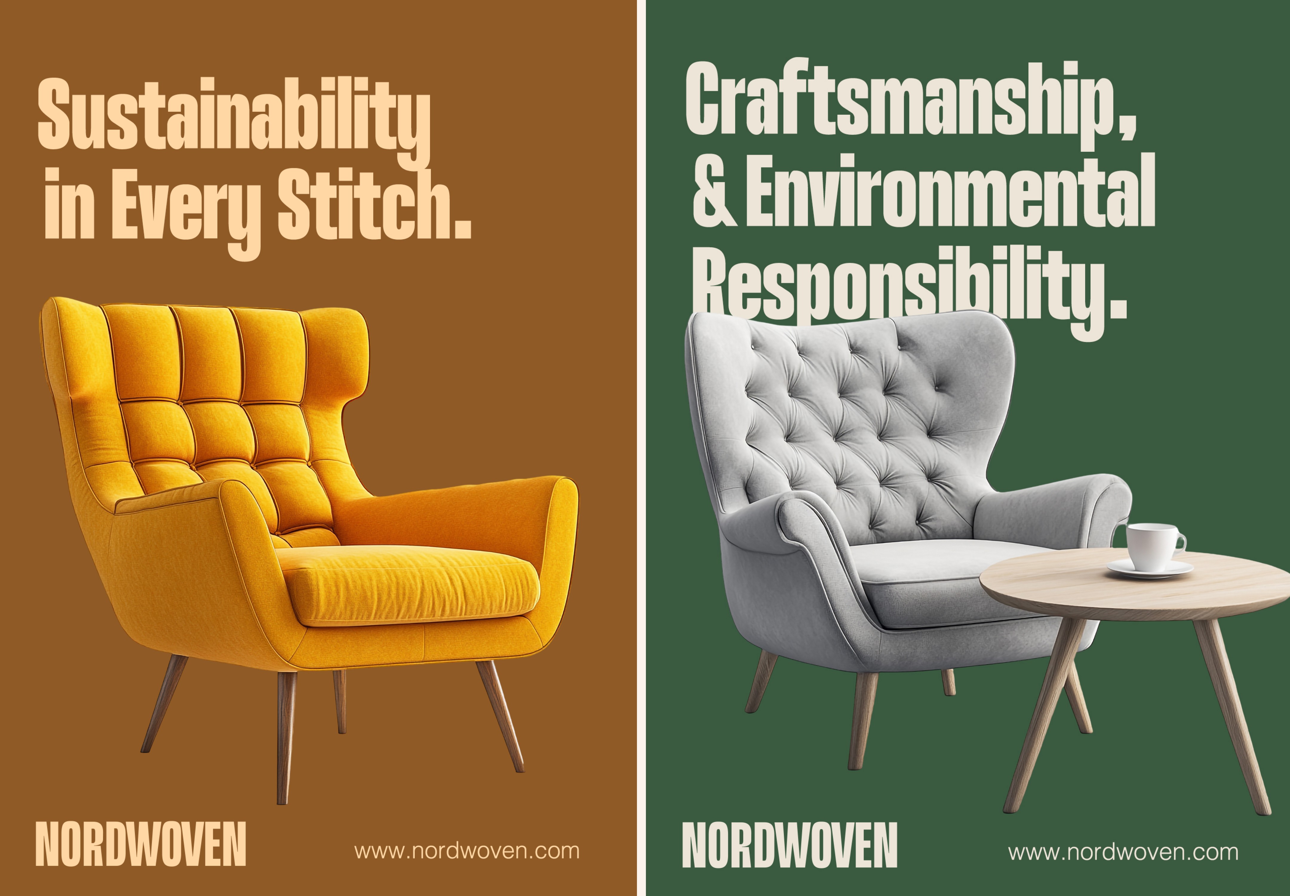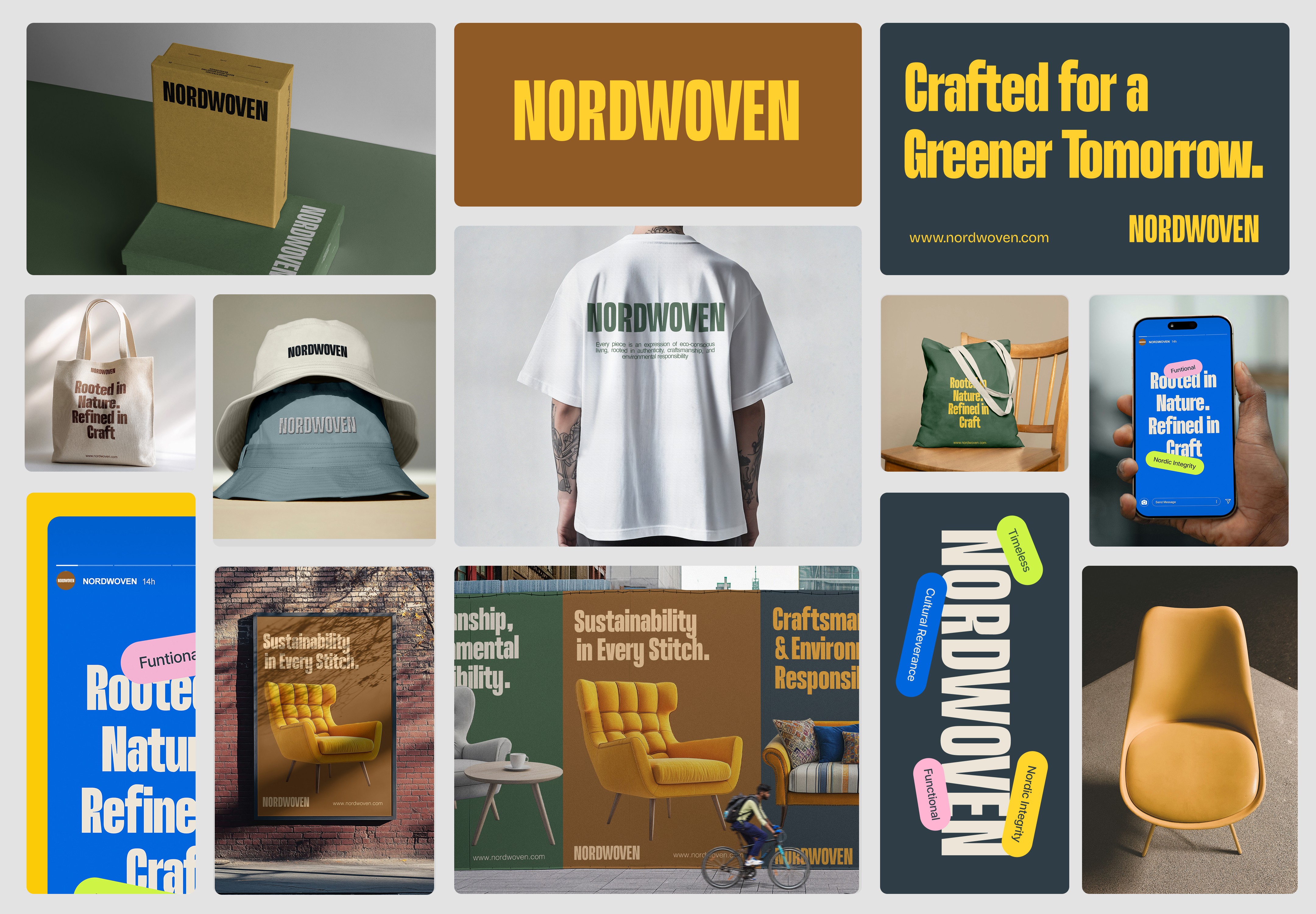 NordWoven is a Norwegian furniture brand rooted in sustainability, craftsmanship, and Scandinavian design principles. The goal was to create a clean, modern brand identity that reflects their eco-conscious values and premium quality. We developed the name NordWoven to symbolize the brand’s Nordic roots and woven connection to nature. The identity features an earthy, elegant color palette, minimalist typography, and a calm, refined tone of voice all working together to position NordWoven as a trusted, high-end brand in the sustainable furniture space.