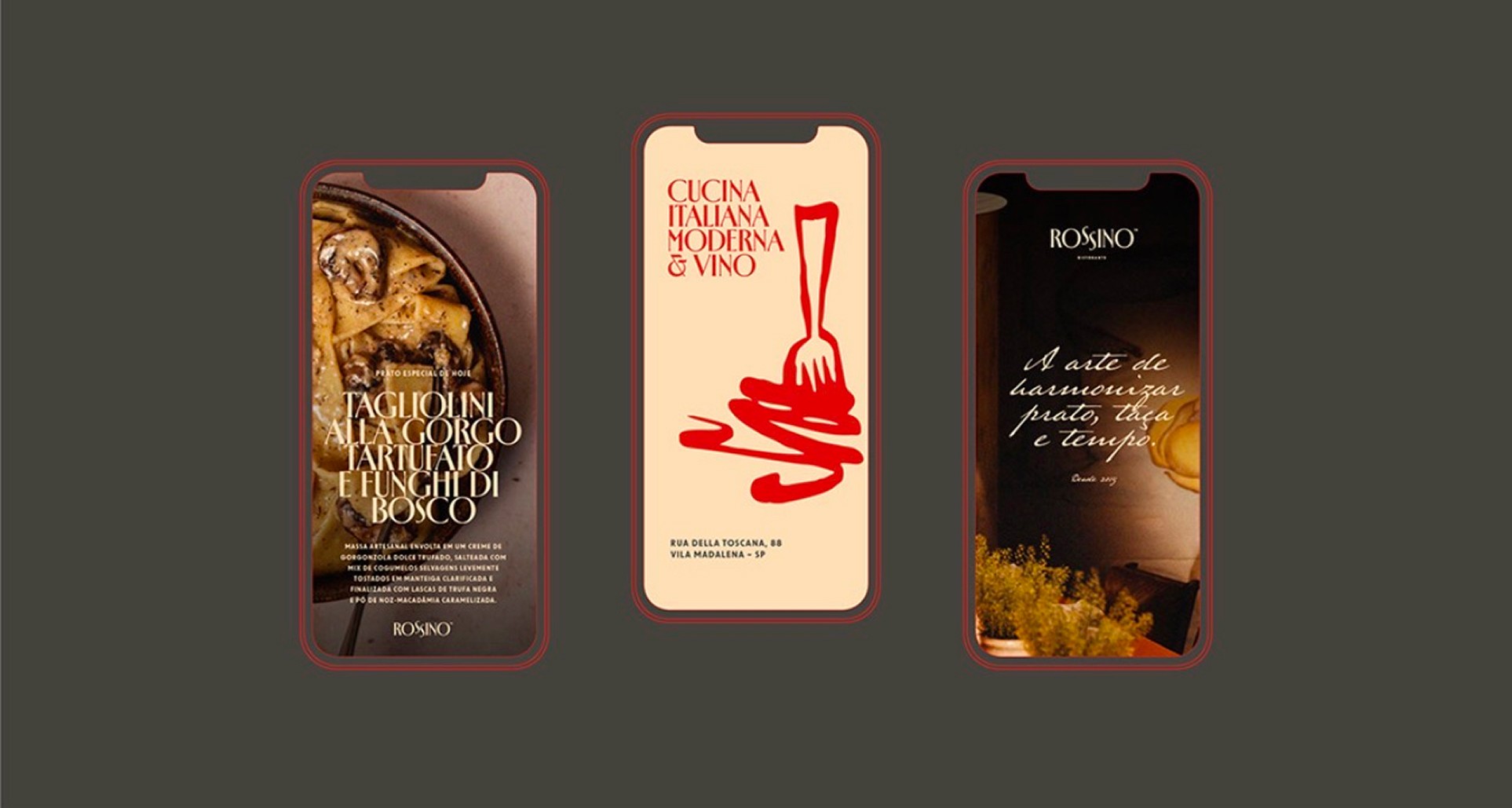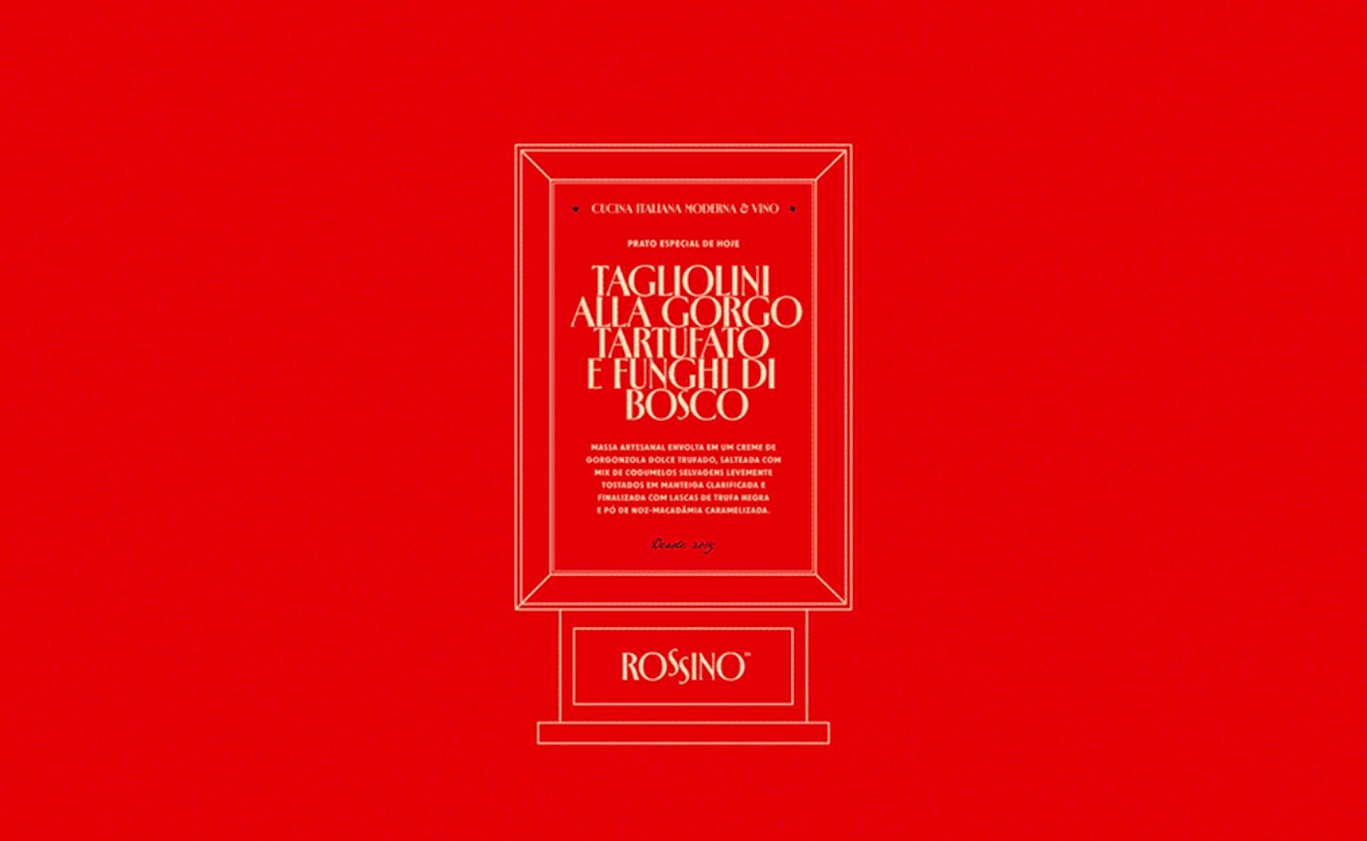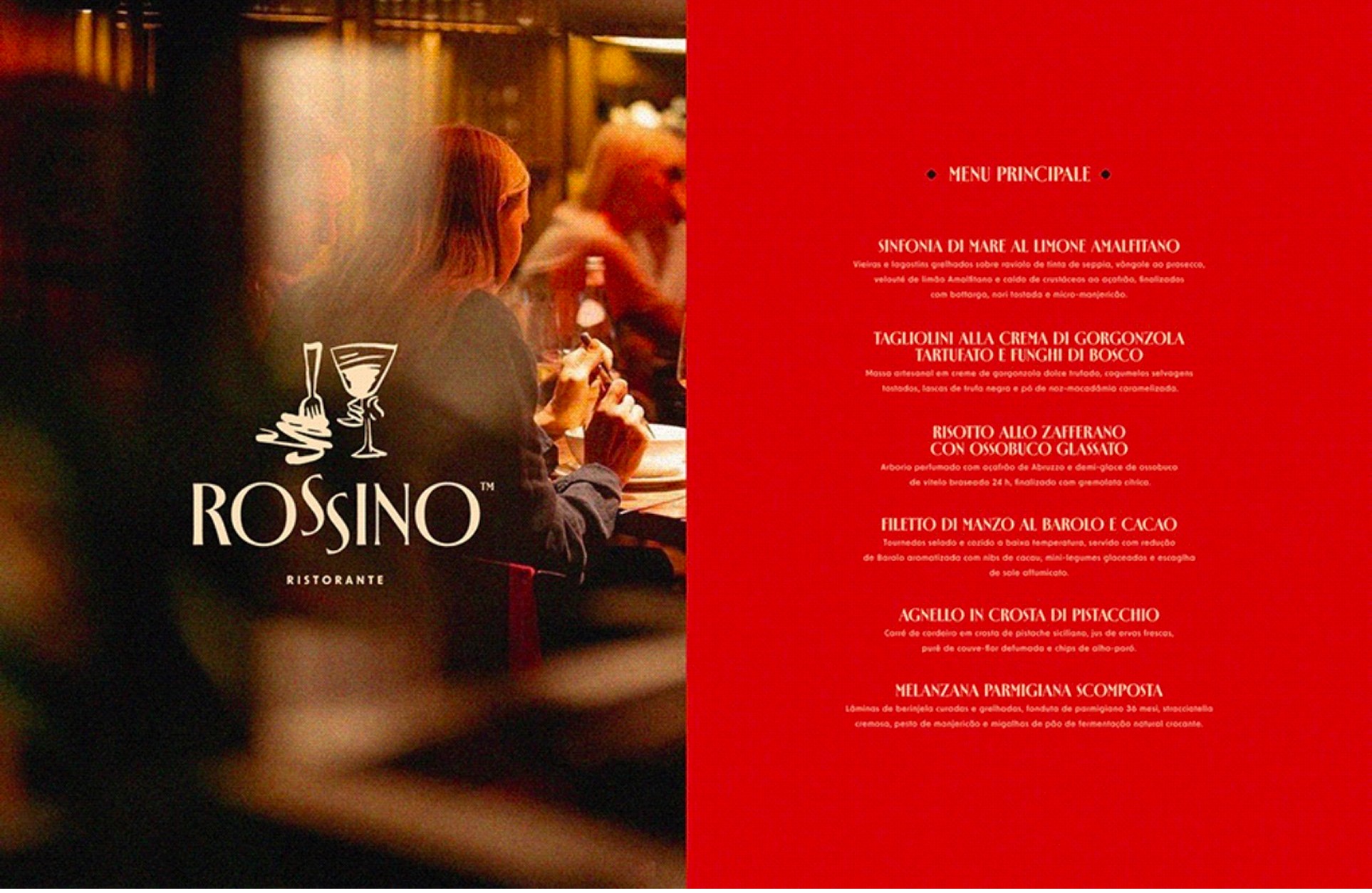 Rossino is a modern restaurant brand crafted for guests who appreciate refined dining, warm ambiance, and elevated simplicity. The objective was to develop a brand identity that feels inviting yet sophisticated balancing contemporary elegance with a sense of comfort and familiarity. We built a visual and verbal identity system rooted in understated luxury from a rich, earthy color palette to a confident, welcoming brand voice that speaks with ease and intention. Every element was designed to enhance the dining experience, from how the brand looks to how it feels in space. This project focused on creating an atmosphere that lingers beyond the plate, where design, mood, and memory come together to form a distinctive and enduring restaurant identity.